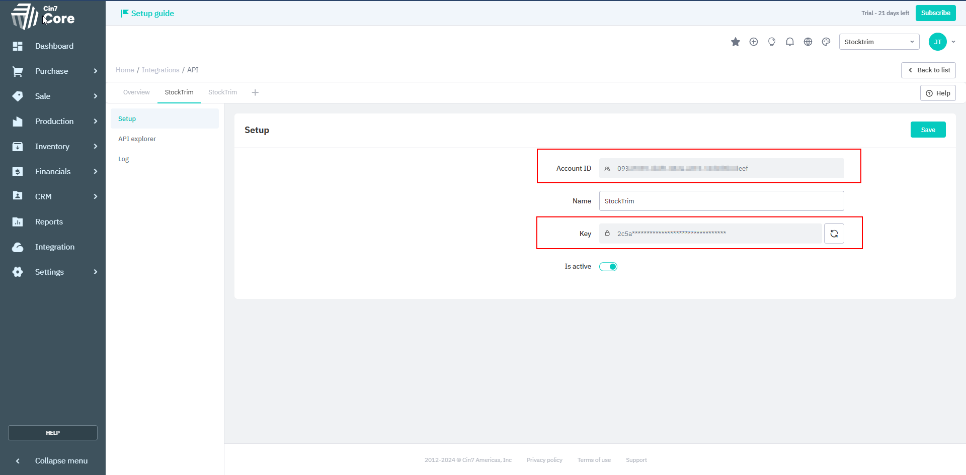 Highlight the Account ID key, right click, then select copy. In StockTrim, paste it into the Account ID field.
