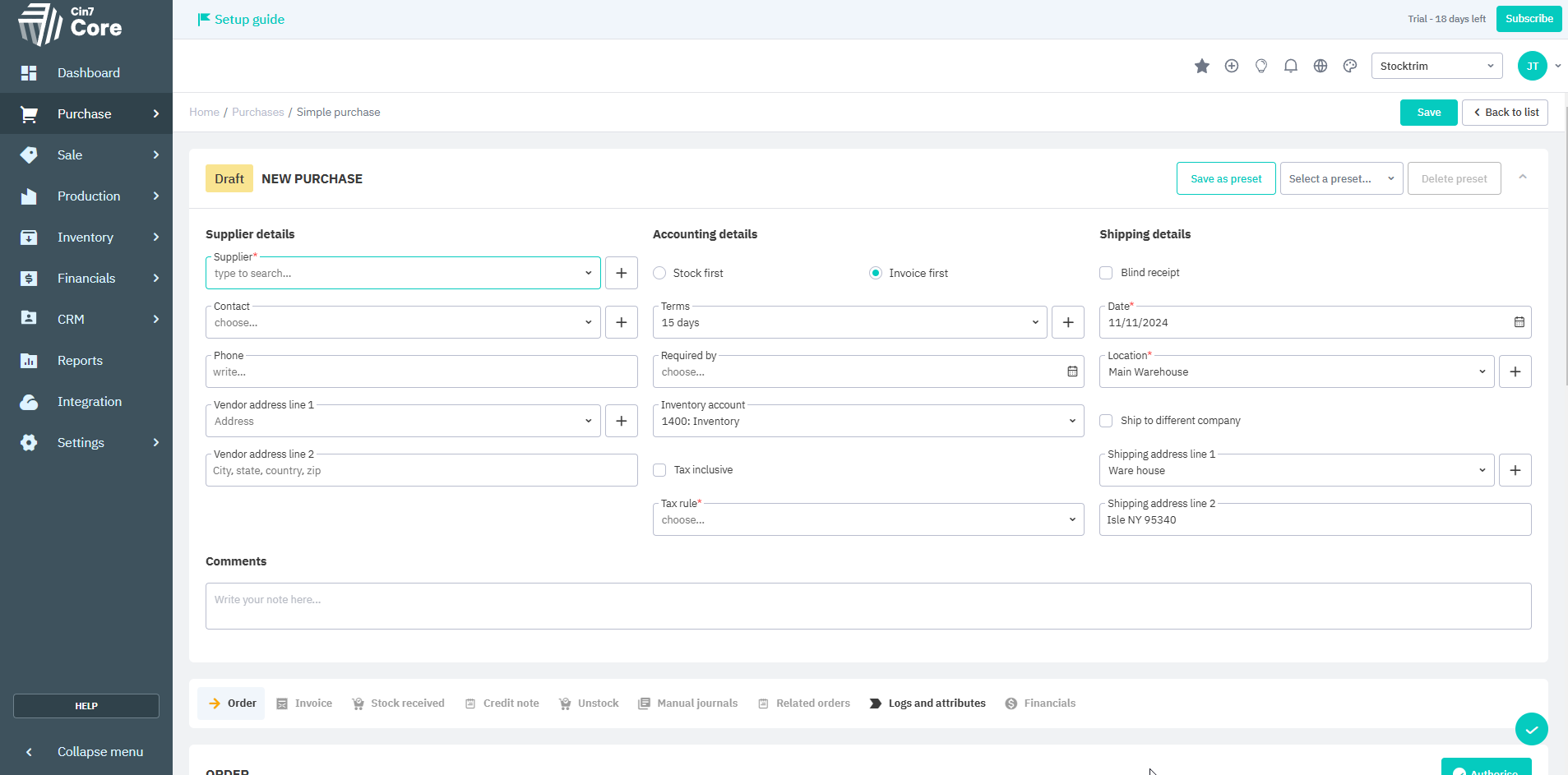 Step 6: Create your purchase orders in Cin7 Core