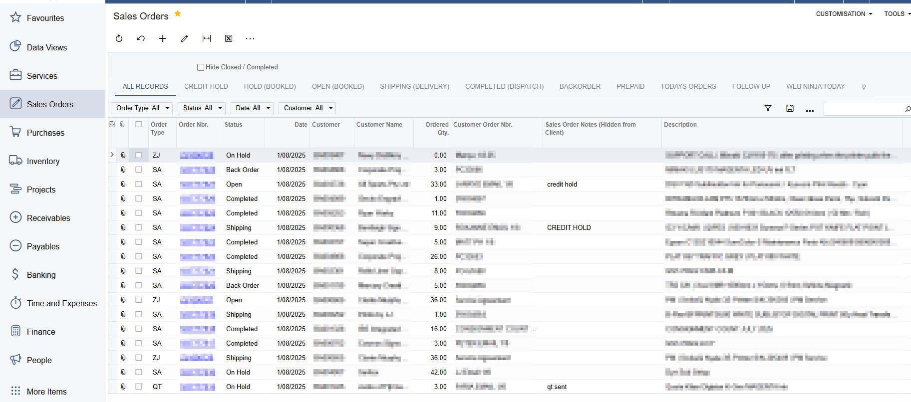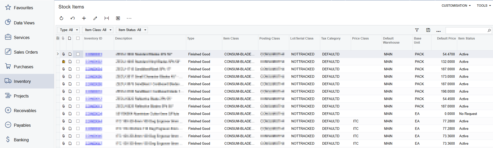 In your Acumatica account, ensure that your inventory and orders history are up to date.